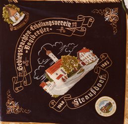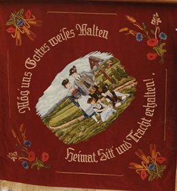 Wir freuten uns alle sehr, dass die Fahne mit den herrlichen Stickereien, dem Bild unseres Heimatortes in der Mitte der Fahnenfläche,